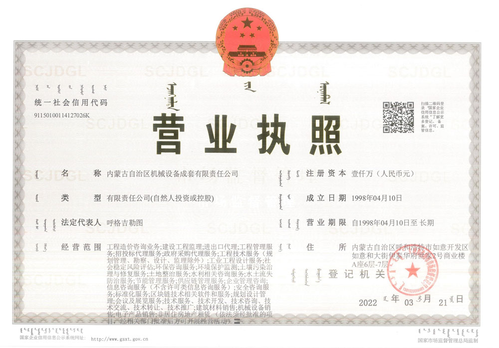 內蒙古自治區機械設備成套有限責任公司營業(yè)執(zhí)照